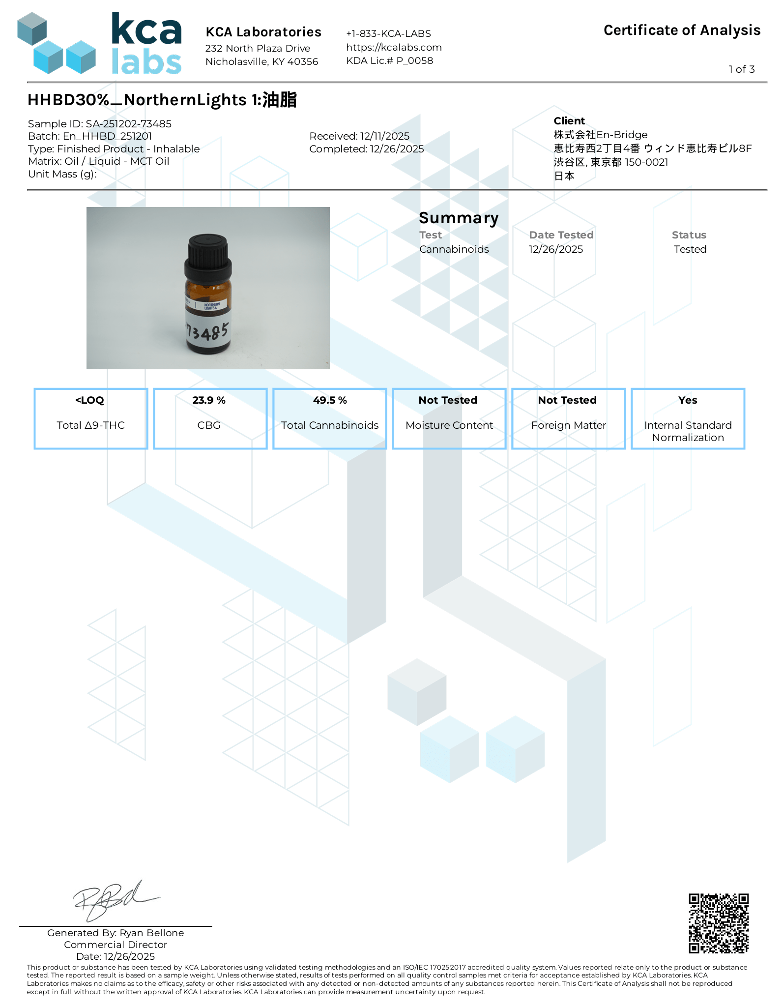 日本国の大麻取締法で規定されるTHC濃度(10ppm未満)を完全にクリアしており、専門機関による成分検査を実施・公開しています。
